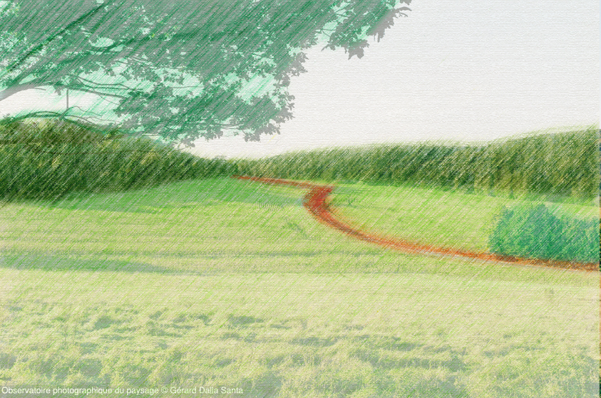 Le travail de l'agriculteur modifie les perceptions de ce paysage par les variations des couleurs, des lumières et du découpage des cultures. Le développement de la végétation, qui forme le premier plan, masque rapidement la vue.