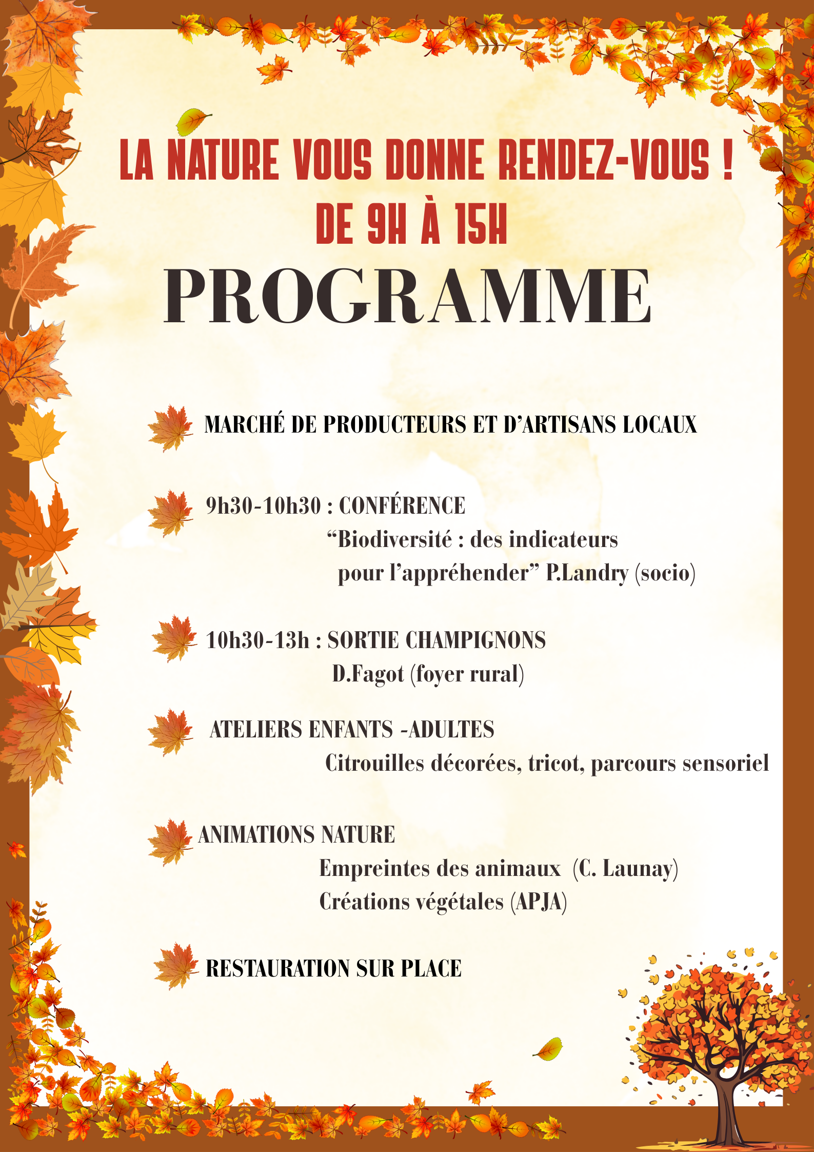 Fête de l'Automne le samedi 11 octobre au Foyer Rural de 9h à 15h.