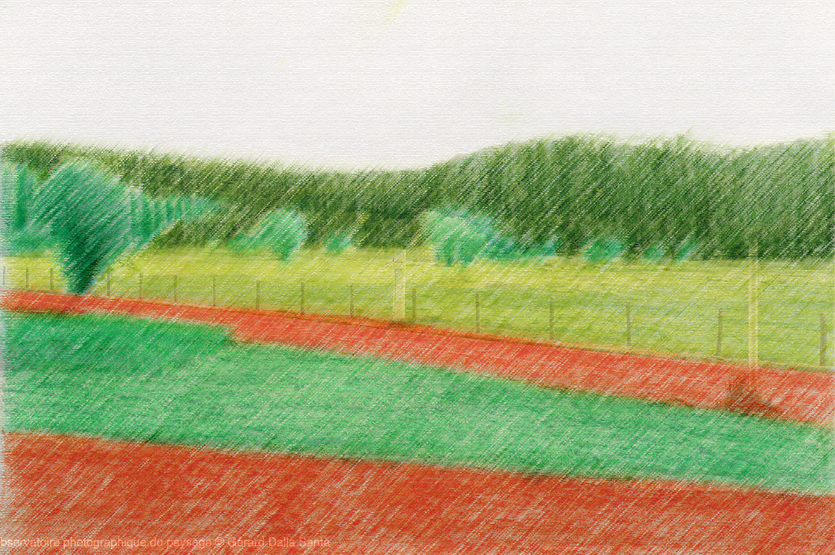 Les bornes de l'arrêt de bus ont été démontées, le paysage a retrouvé son harmonie. Le pâturage extensif permet de préserver les prairies ouvertes tout en favorisant la croissance d'arbres isolés qui donnent de la profondeur au paysage.